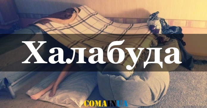 Халабуданевелике тимчасове житло дітей. Головні будматеріали – стільці, ковдри, подушки (на вулиці – доски, палки, лопухи та інші речі, які потрапляють на очі). Стоїть доти, доки не повернуться з роботи дорослі.