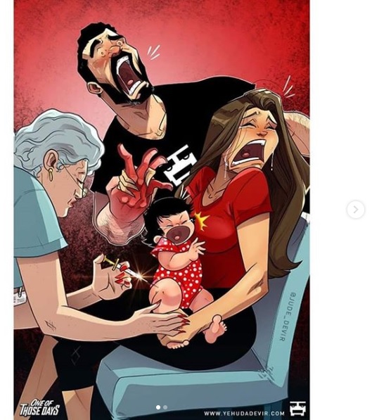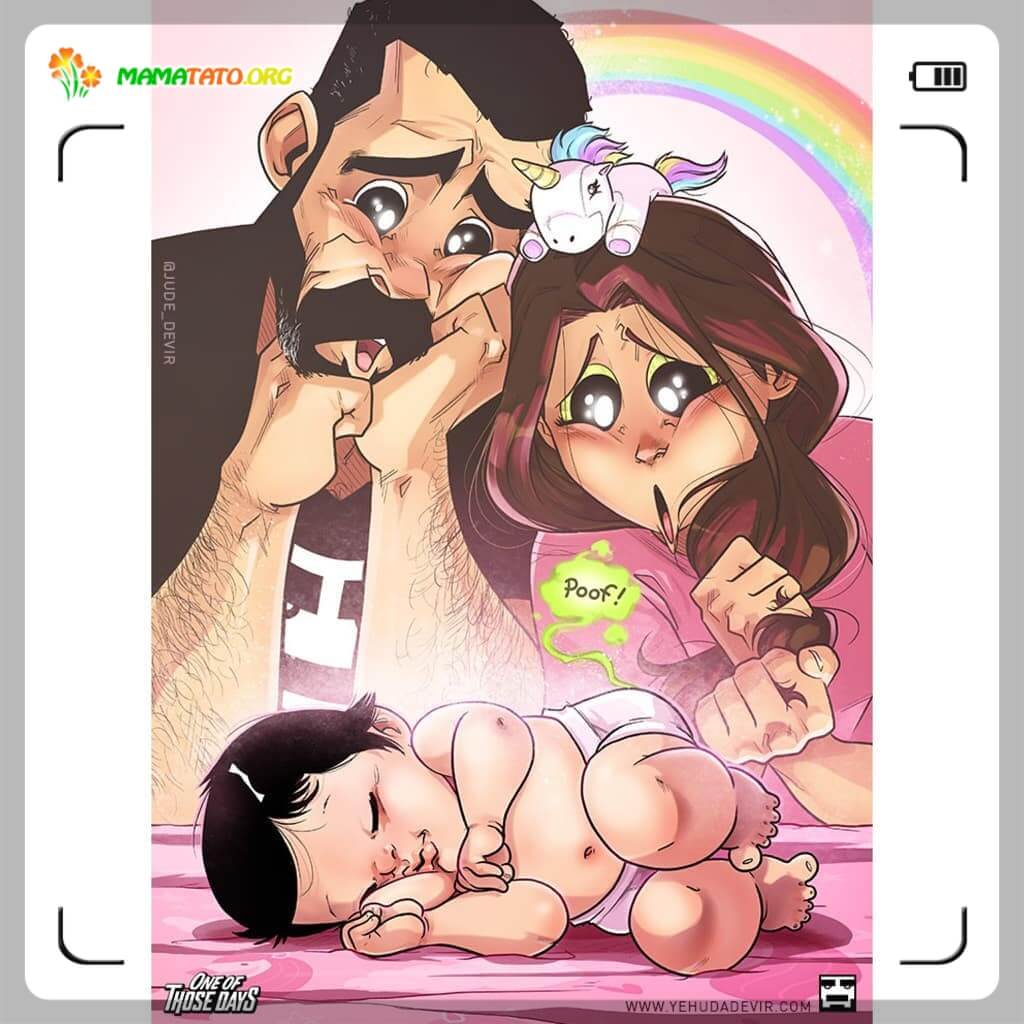 “Після 17 годин нескінченного болю ми зробили це !!! Ми отримали нового ангела в родину!!!” – написав Девір під коміксом.